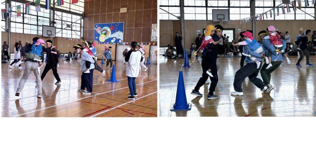 すみれ組、ひまわり組の合同競技は『Zooっとおんぶ合戦』です。