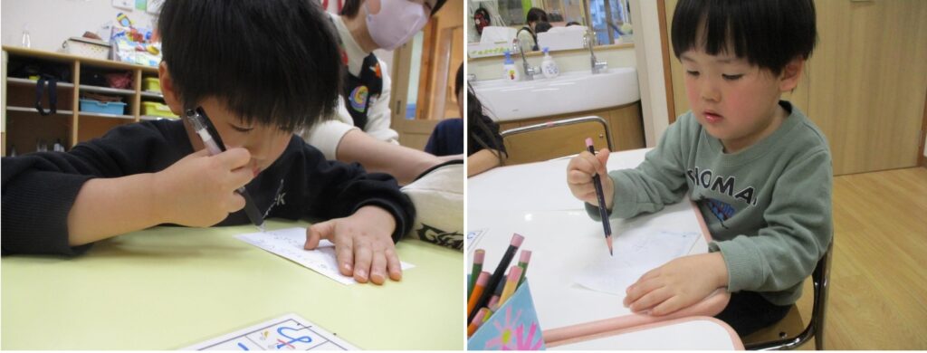 「誰に書こうかな~?」と思い浮かべたり、「“あ”ってどう書くの?」と文字に興味を持ったり。