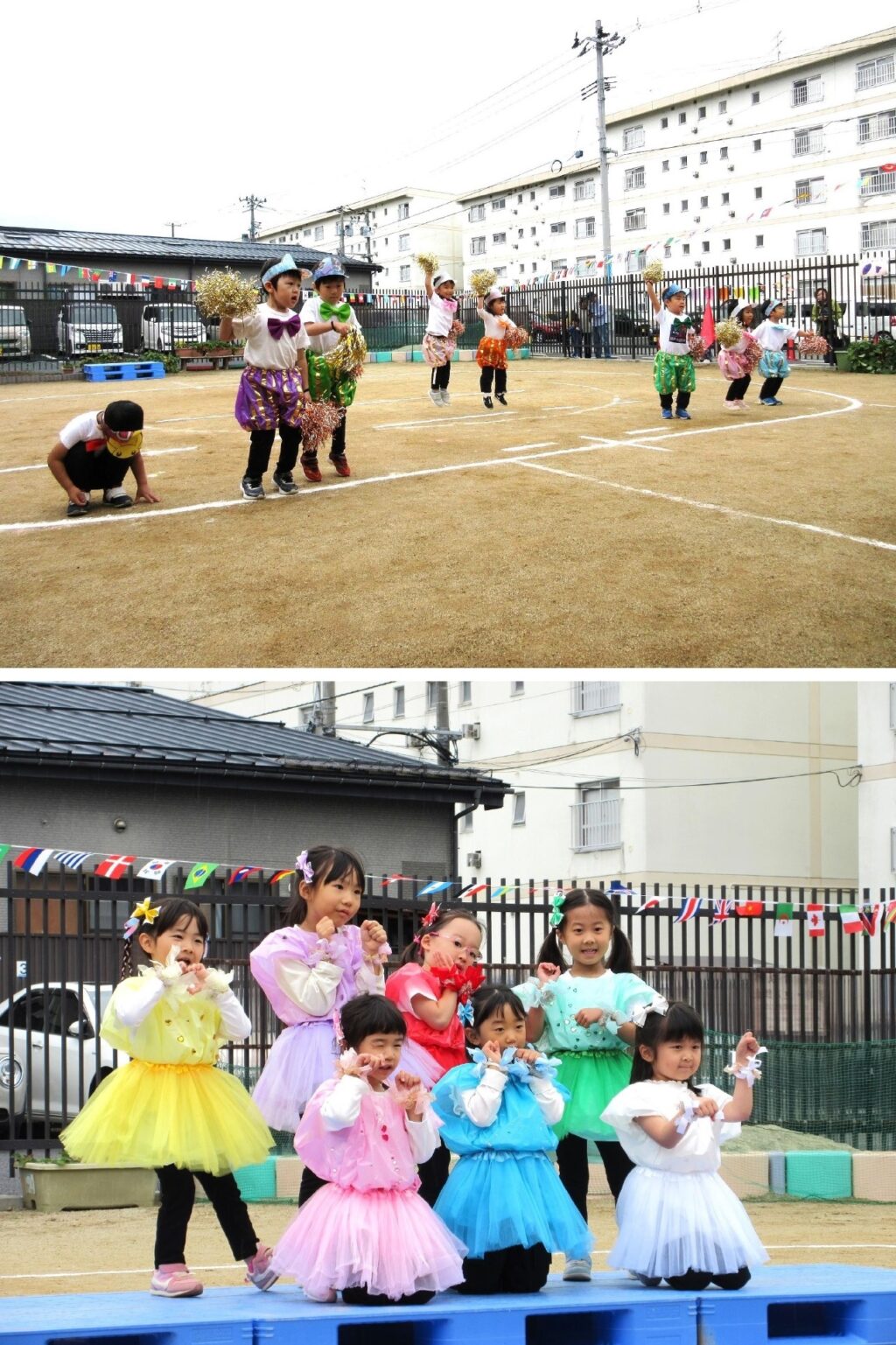 3歳児こすもす組・4歳児あじさい組は可愛らしいダンスを披露♪ノリノリで踊っていました。
